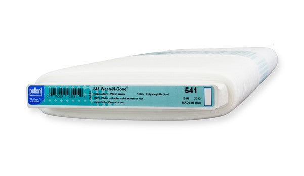 Pellon® 541 Wash-N-Gone® is a featherlight embroidery buddy perfect for machine embroidery, appliqué, cut work, and monogramming. It keeps your fabric steady while you stitch, then magically disappears with a quick wash in any water temperature—no mess, no fuss!
